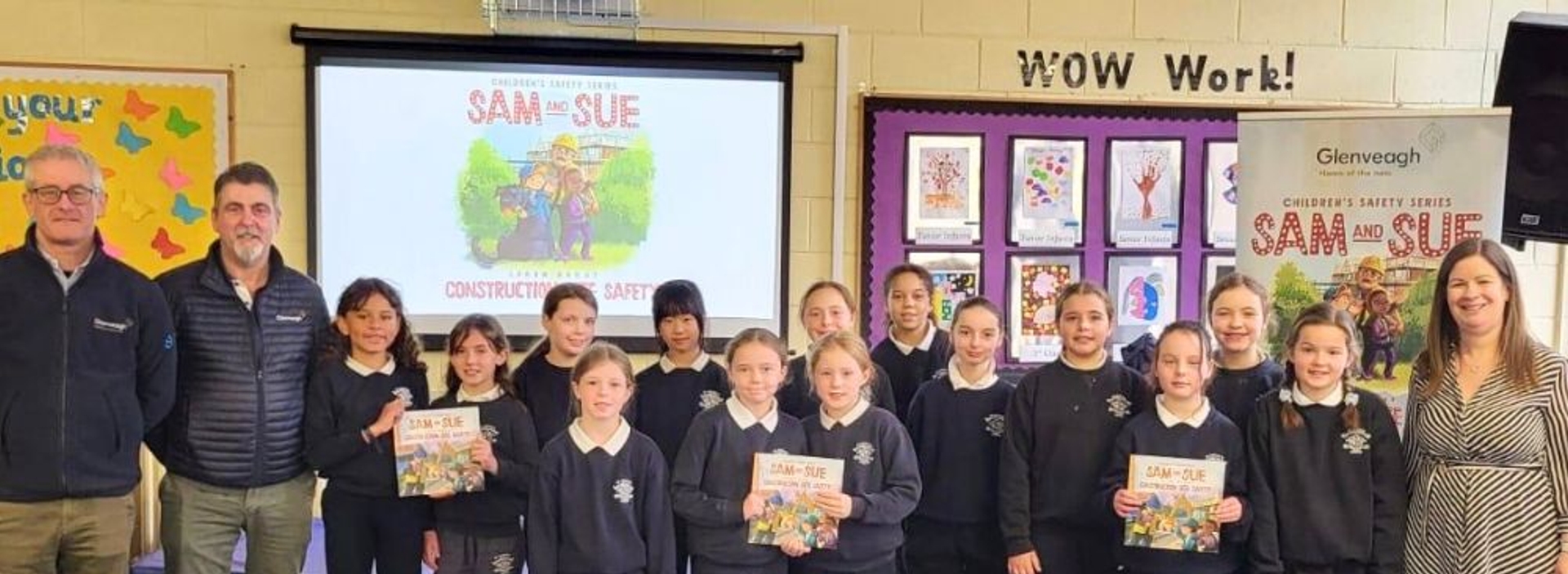 Some of the tools Glenveagh use to bring construction site safety awareness to a younger audience are stories and visual cues that help bring safety to life. Enter Sam and Sue, a couple of friends eager to discover the areas around them. Our approach saw the creation of Sam and Sue Learn About Construction Site Safety, a book which is the result of Glenveagh innovation when it comes to engaging with primary school children. From finding out about potential dangers to seeing the safety measures on site, Glenveagh staff bring Sam and Sue to life in the classroom, all the while delivering a very important message.