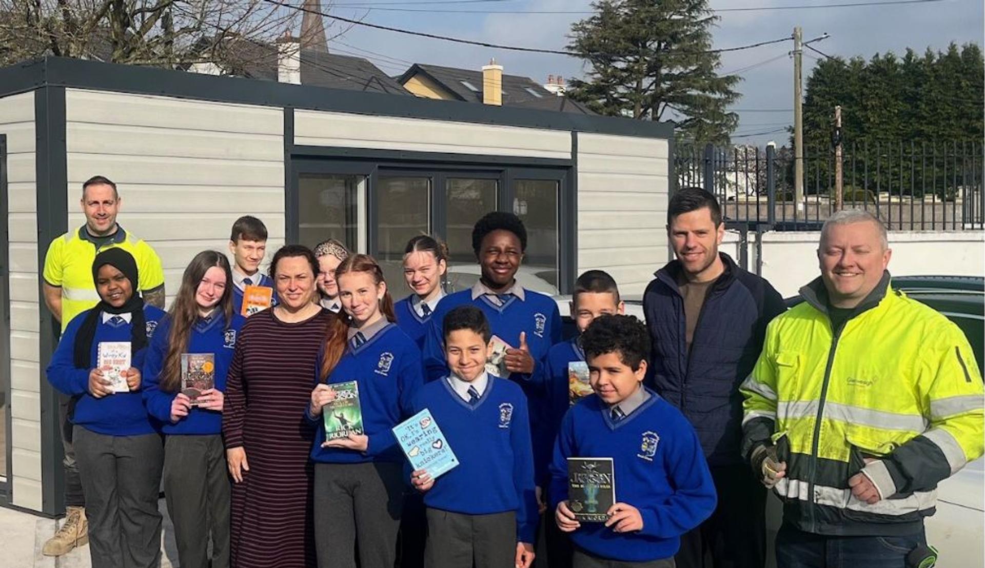 Thanks to all the staff and students of Scoil Ursula who made us very welcome as we helped start the project. A special thanks to Nigel Doherty from Evo Civils and Darragh Kiely, Glenveagh Site Manager, for making it all happen. School Principal Elizabeth Cronin and Deputy Principal Brian Walsh inspire lots of young minds and they have a great vision for the new library at the school. Wishing all the pupils many happy hours of immersing themselves in the joy of reading. It was a pleasure to play a small part in the beginnings of your new library.