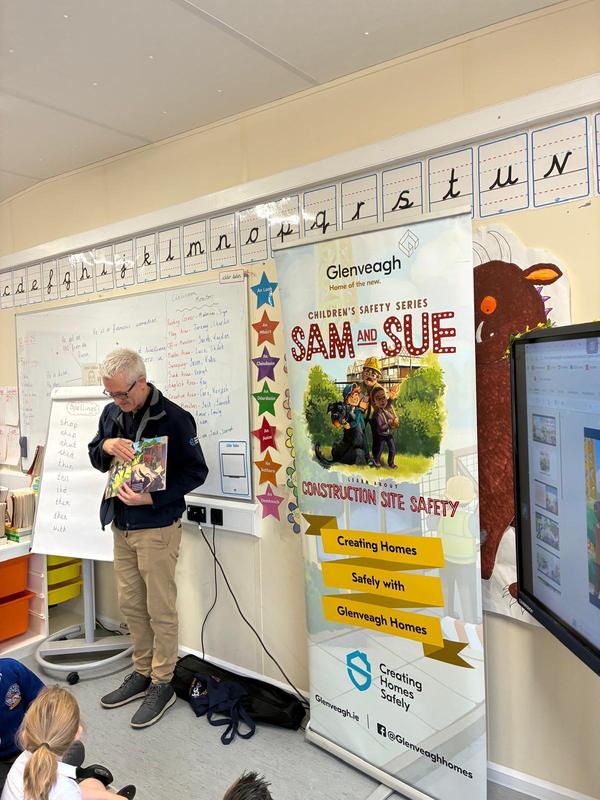 Peter Morgan from Glenveagh’s Health and Safety Team spoke to the students about the potential dangers found in construction sites, such as heavy machinery, scaffolding and loose materials. Through age-appropriate language and real-life examples, the team captured the students’ attention while driving home the important message of staying safe around building sites.